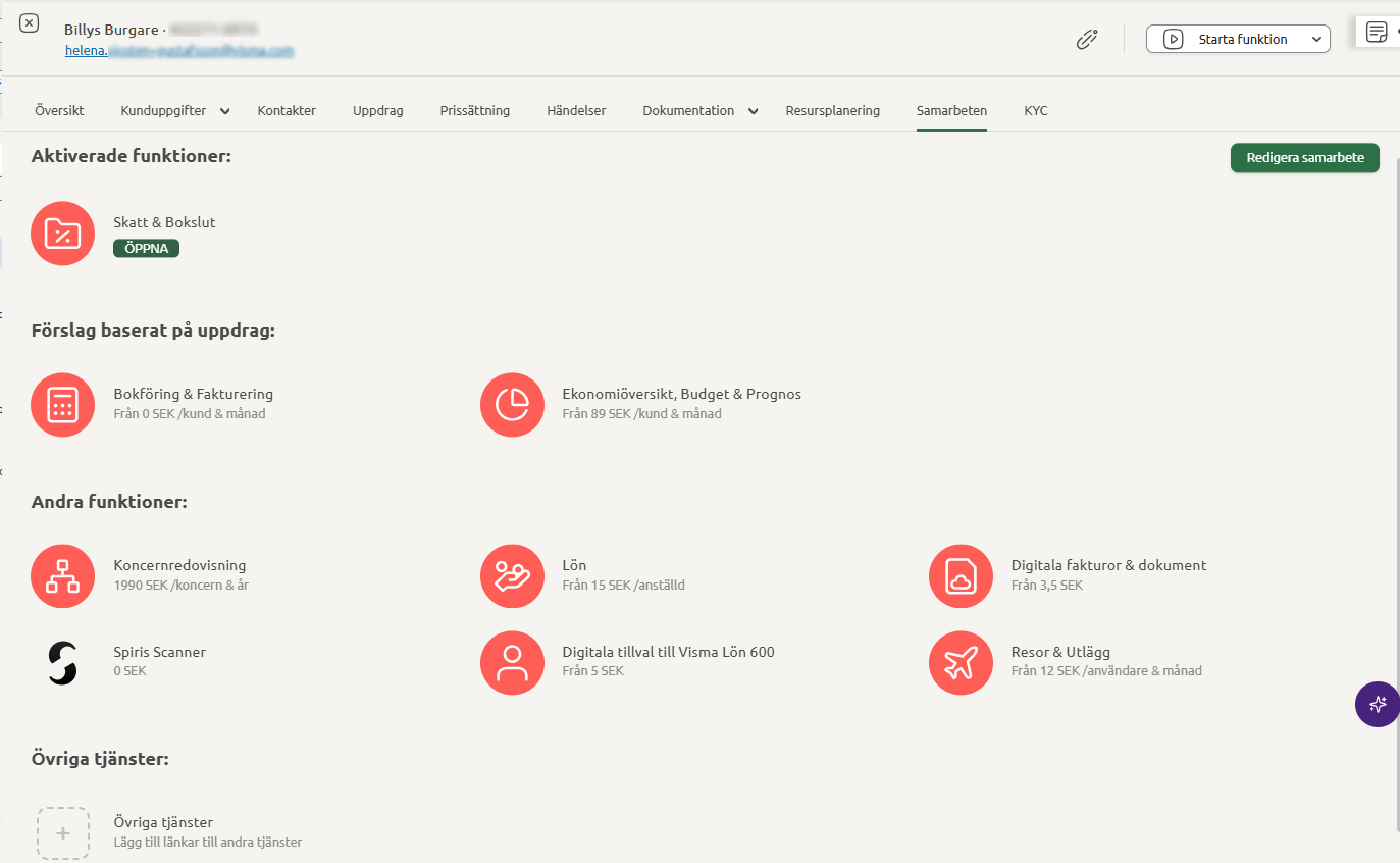 If you want to change the availability of a service or modify a collaboration, for example change the invoice recipient, you can easily do so on the collaboration page for the customer. Go to Settings - Collaborations and select the customer you wish to edit.