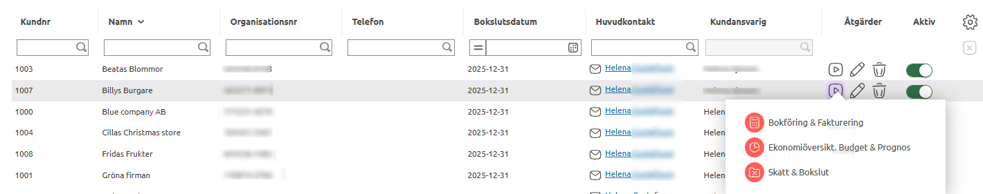When the customer has approved the collaboration, you're good to go! You start the solutions by clicking on the Open solutions icon in the customer overview or via the customer card Open solution.