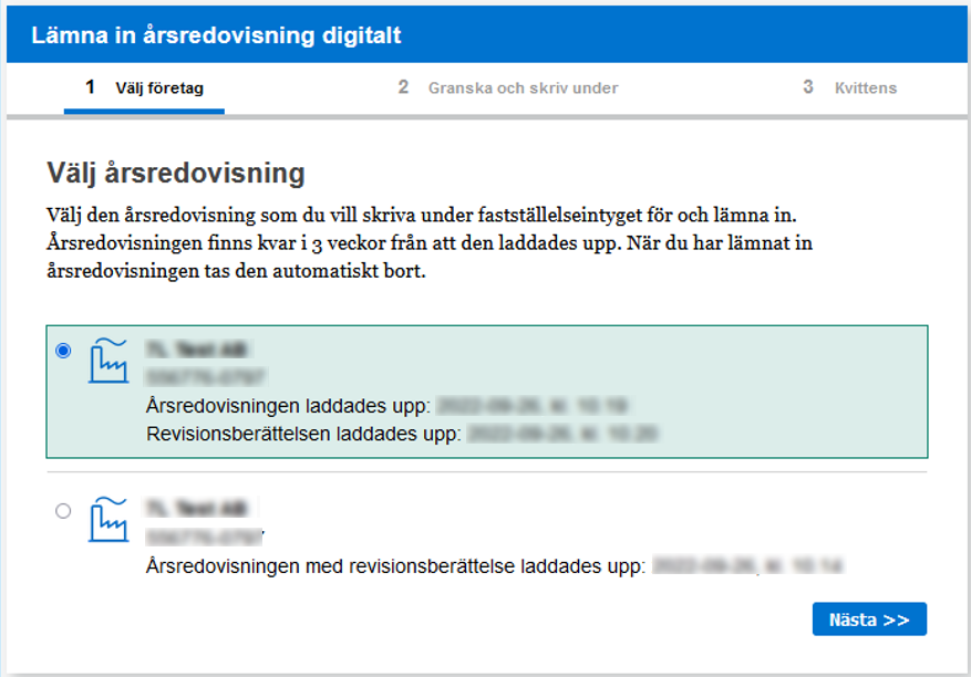 A copy (transcript) of the annual report is uploaded, together with the financial statements approval, to the dedicated space at the Swedish Companies Registration Office. There, the financial statements approval needs to be signed by a board member or the CEO. This is done in the Bolagsverkets service Lämna in årsredovisningen digitalt at https://arsredovisning.bolagsverket.se/lamna-in.