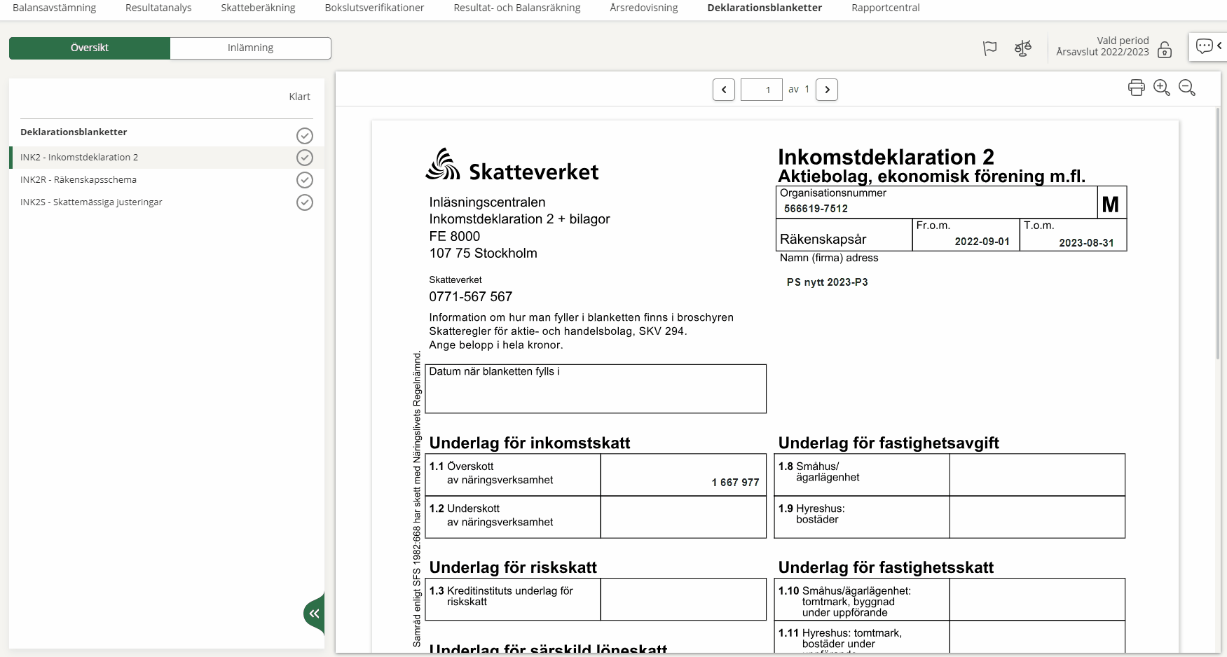 Tax return INK2 and Tax appendices are used to enter employment- and capital income, deductions and your real estate fees/taxes.