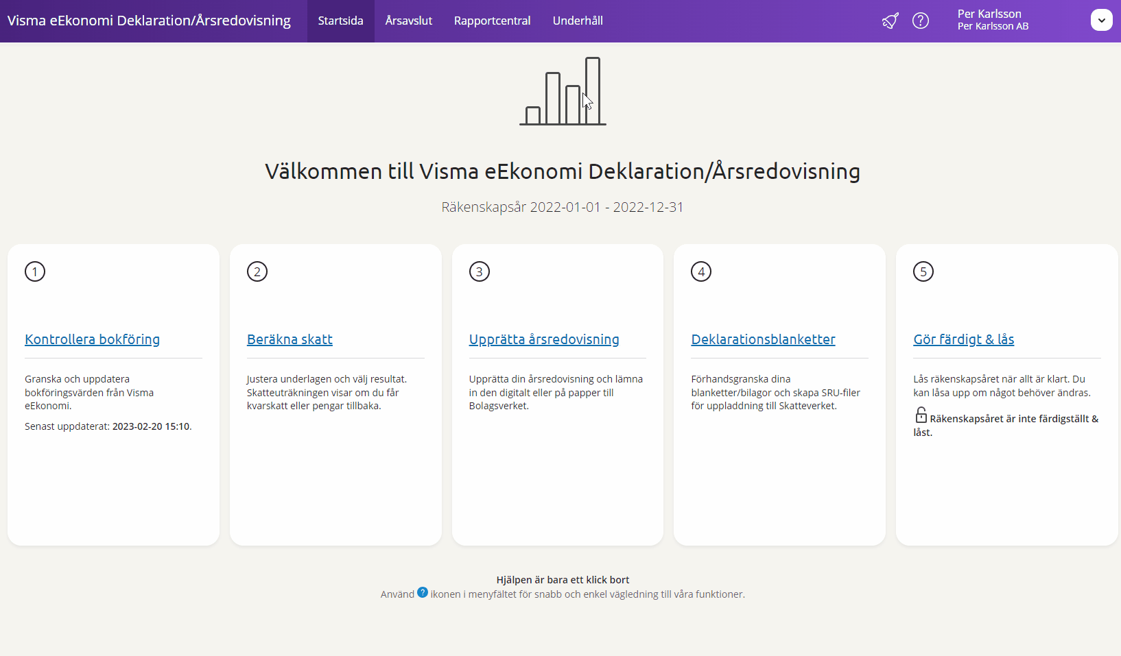 Under Year-end closing- Tax forms, you will find the tax forms INK2 - Inkomstdeklaration 2 för aktiebolag m fl with associated appendices INK2R - Räkenskapsschema and INK2S - Skattemässiga justeringar. If you have added and filled in Calculate tax - Tax appendices, the completed tax forms are displayed here. See below for a list of all supported forms.