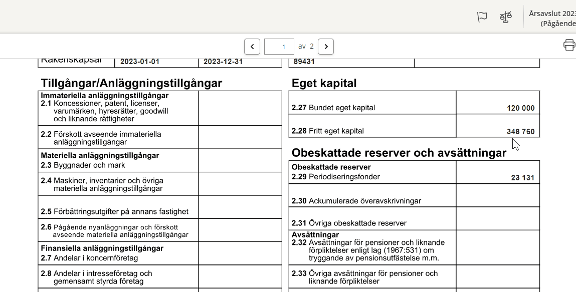 On the tax form INK2R - Account scheme, the income statement and balance sheet are specified. The layout is more or less the same as in the Annual Accounts Act and in BFNAR 2016:10.