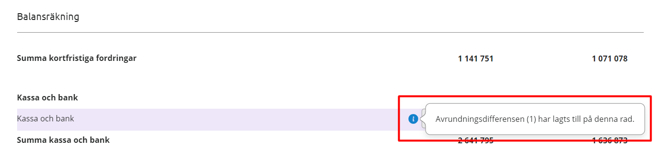 When values from the financial statement are transferred to the tax form INK2R, roundings are handled automatically.