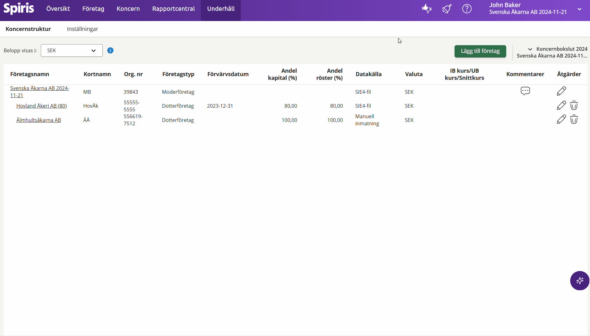 Nu kan du snabbt och enkelt navigera direkt till företagstablån genom att klicka på företagets namn i listan under Underhåll - Koncernstruktur.