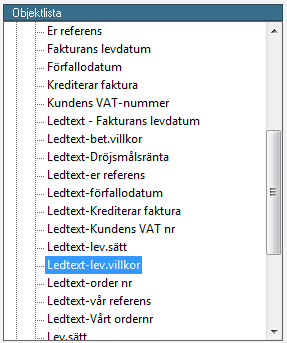 - Leta upp objektet Ledtext-lev.villkor och markera det.