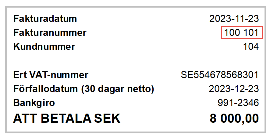 Med malleditorn har du stora möjligheter att anpassa din fakturamall utifrån dina och dina kunders behov. Vill du till exempel gruppera dina fakturanummer och använda mellanslag som tusentalsseparator, behöver du göra en malländring för att det grupperade fakturanumret ska visas på den skickade fakturan.