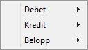 I fältet Villkor kan du välja om Debet, Kredit eller Belopp ska vara Större än, Mindre än eller Lika med ett visst värde.