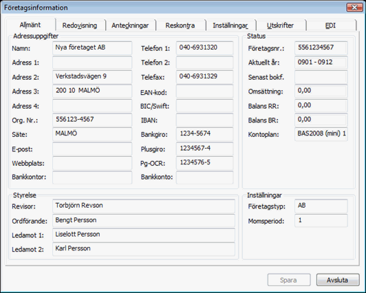 - Fyll i de fält du har användning för och klicka på Spara och sedan Avsluta.