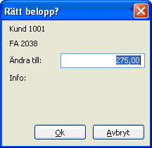 Normalt betalar kunden rätt belopp, men om kundens betalning avviker från fakturabeloppet, kan du här ange det belopp kunden betalt.