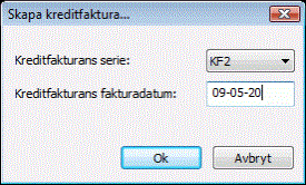 - Ändra eller bekräfta fakturadatum för kreditfakturan (inom räkenskapsåret du står i). Klicka OK.