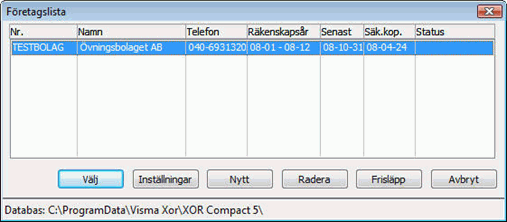 I Företagslistan ser du de företag som är upplagda i programmet. Är det första gången du startar programmet, syns endast Övningsbolaget här.