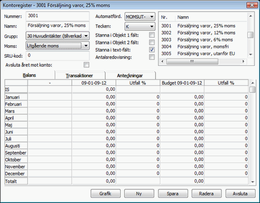 - Bläddra igenom och justera eventuellt om du har ändrat i kontoplanen.