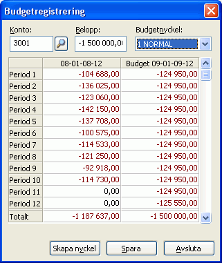 Välj Budgetnyckel.Programmet fördelar nu beloppet enligt den nyckel du valt.