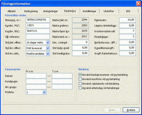 Kom ihåg att dessa inställningar gäller alla kunder i företaget.