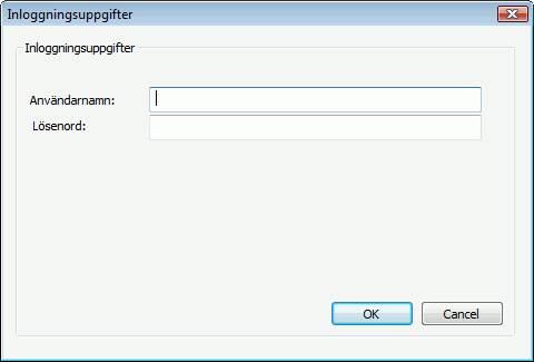 - Om du har glömt att fylla i användarnamn och lösenord får du upp nedanstående ruta.