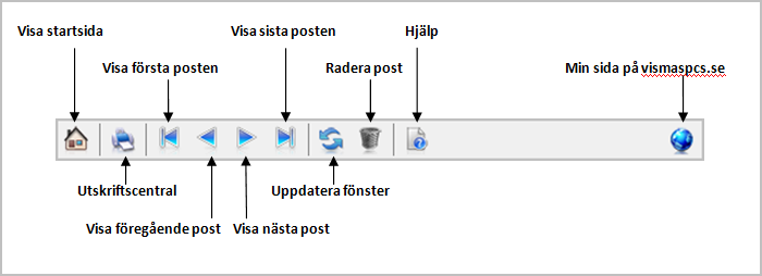 Du kan använda knapparna i knappraden för ett antal grundfunktioner:
