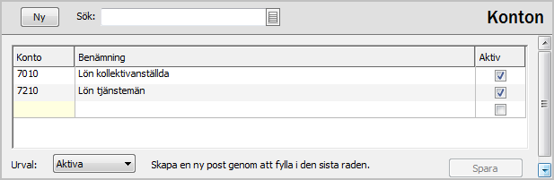 Välj om du vill visa alla, enbart aktiva eller enbart ej aktiva konton i listan. |