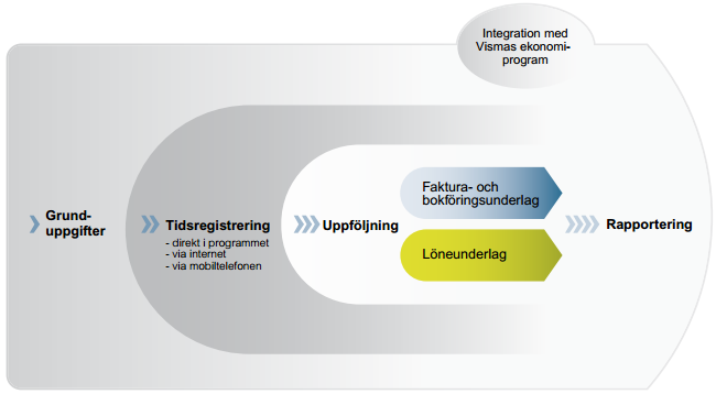 I nedanstående illustration får du en översiktlig bild över arbetsflödet i Visma Tid.
